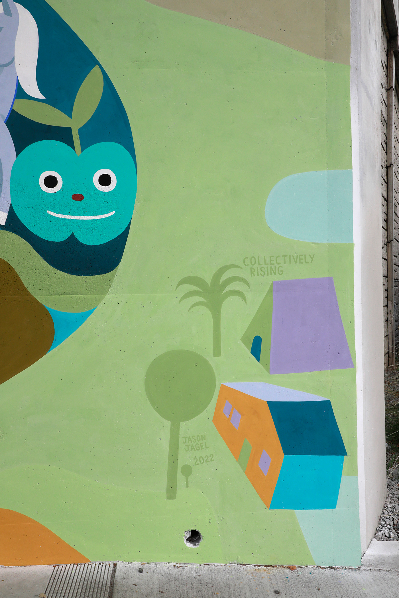 Collectively Rising 2023 Mineral-silicate paint on masonry, 20 x 67 feet Berryessa Road, San Jose, CA Commissioned by San Jose Arts Commission